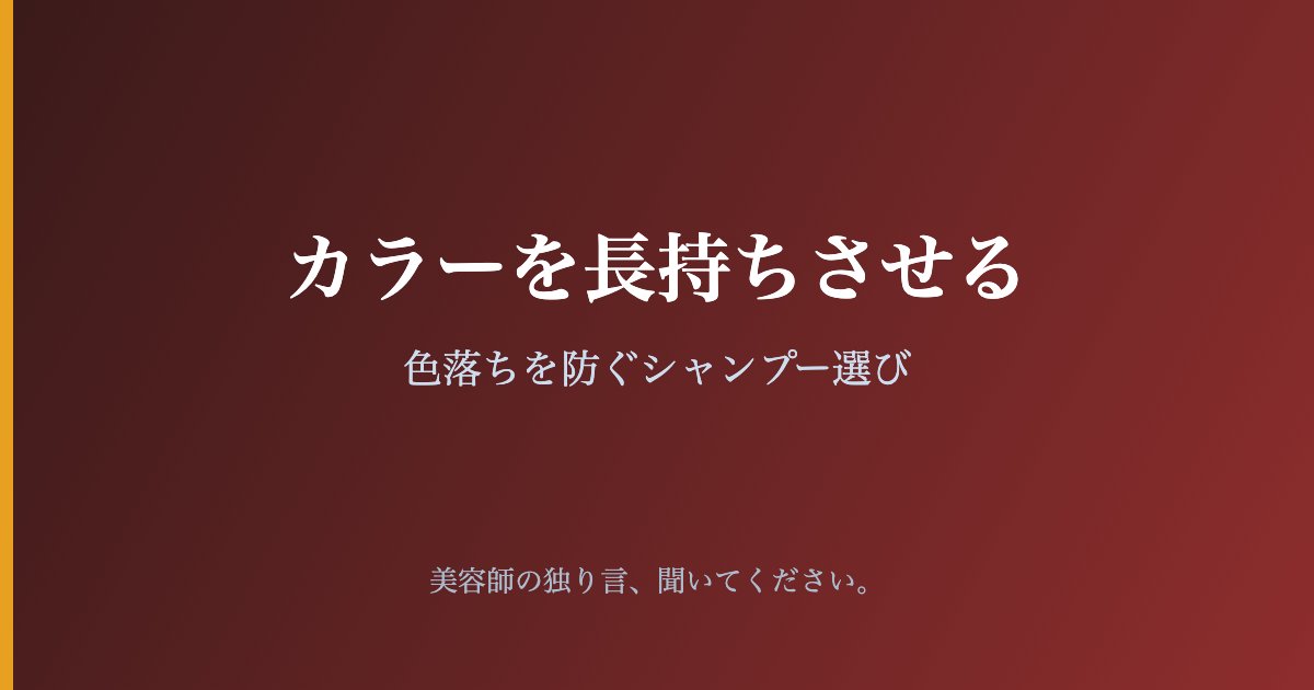 せっかく美容室でカラーをしたのに、1週間もすると色が褪せてきた——そんな経験はありませんか?実は、カラー後の色持ちを左右する最大の要素の一つが「シャンプーの選び方」です。正しいシャンプーを選ぶだけで、カラーの色持ちは大きく変わります。美容師として知っておいてほしいことを、詳しく解説します。